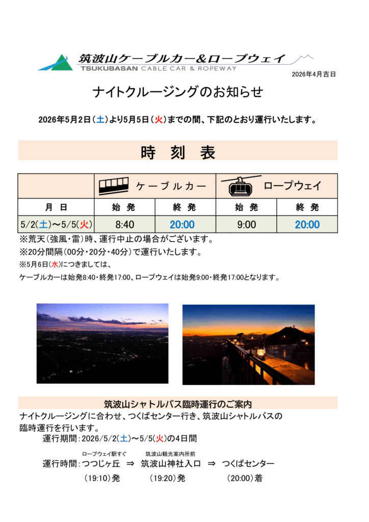 地上にきらめく夕日と天空にきらめくトワイライトを満喫できる筑波山で、素敵な一時を過ごしてみませんか?